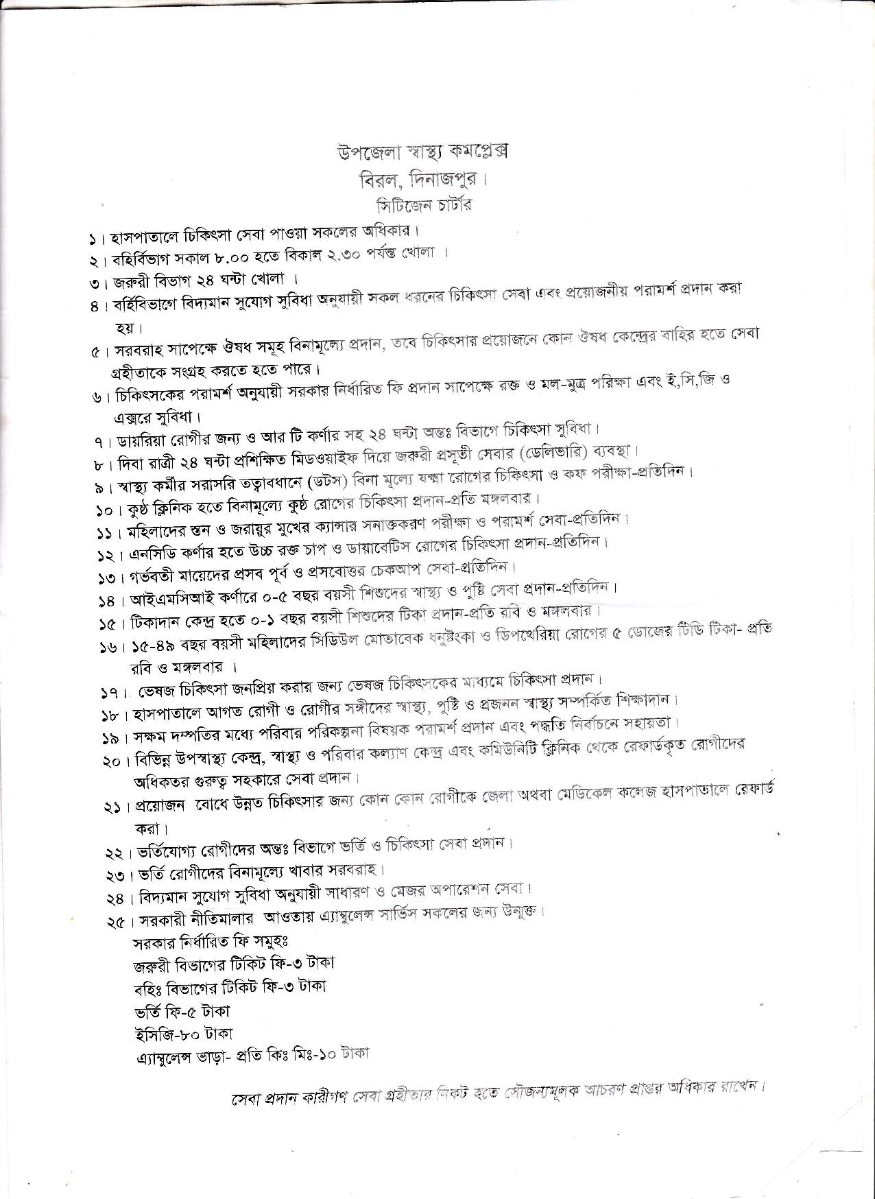 উপজেলা স্বাস্থ্য কমপ্লেক্সের সিটিজেন চার্টার
